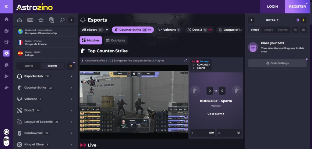 - Astrozino Casino Sports Betting Section
