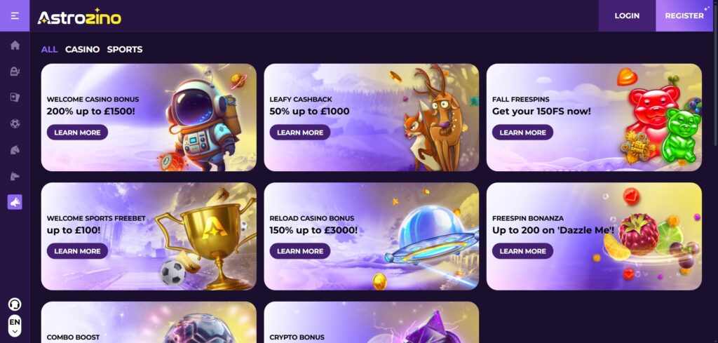 Although the casino does not offer no deposit deals, many UK players search for free spins no deposit no GamStop. Astrozino instead focuses on deposit-based rewards with high-value multipliers and free spins packages.