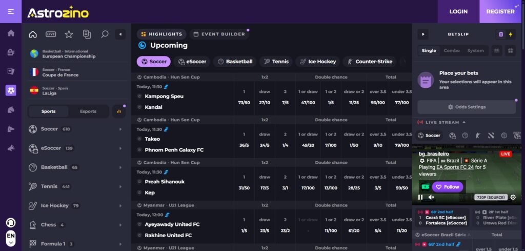 Astrozino Casino runs a sportsbook with more than 3,500 events. The coverage includes mainstream sports and niche options, giving players a wide betting market.