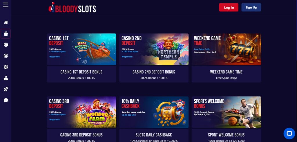 | 🎲 Available Game Types | Bloody Games, Mini Games, Classic Slots, Megaways, Table Games, Bonus Buy, Progressive Jackpot, Live Dealer Games |