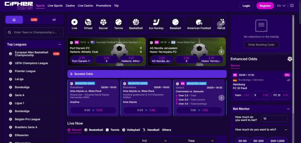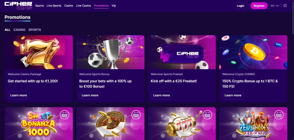 Cipherwins Casino also provides attractive sports betting promotions. The focus is on easy-to-understand reloads, free bets, and market features that improve betting value. Players can benefit from welcome offers and weekly bonuses that support frequent play.