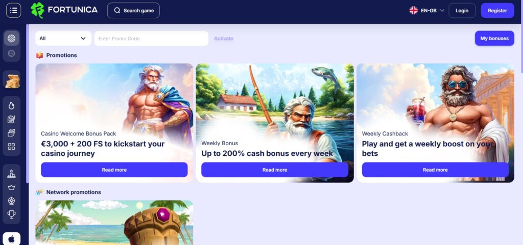 Fortunica runs additional weekly promotions for its players. These can keep the momentum going after the welcome offer finishes.