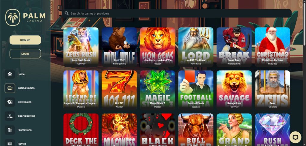 Palm Casino has a game library of more than 8,000 titles, which is among the largest in the industry. Players can choose from online slots, table classics, and real dealer rooms.