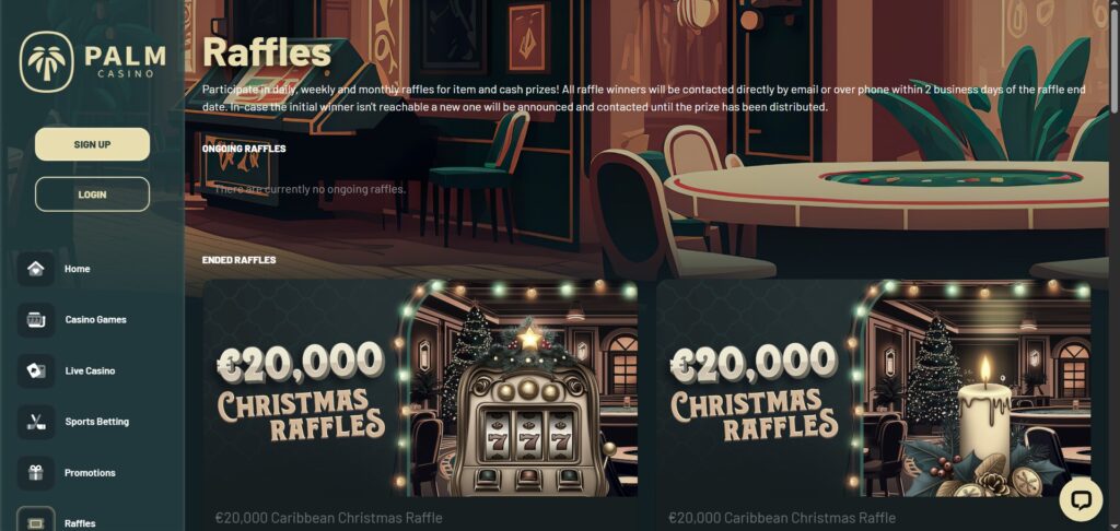 In addition to standard deposit bonuses, Palm Casino holds raffles that provide items and cash prizes. Players can take part daily, weekly, and monthly, with rewards often reaching high values. The most common promotion is a £20,000 Raffle with a 30x wagering requirement attached to any bonus winnings.
