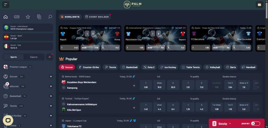 Palm Casino also runs a sportsbook that covers both traditional sports and digital competitions. The section offers competitive odds, live updates, and event coverage, making it a standout choice for players looking for betting sites not on GamStop.