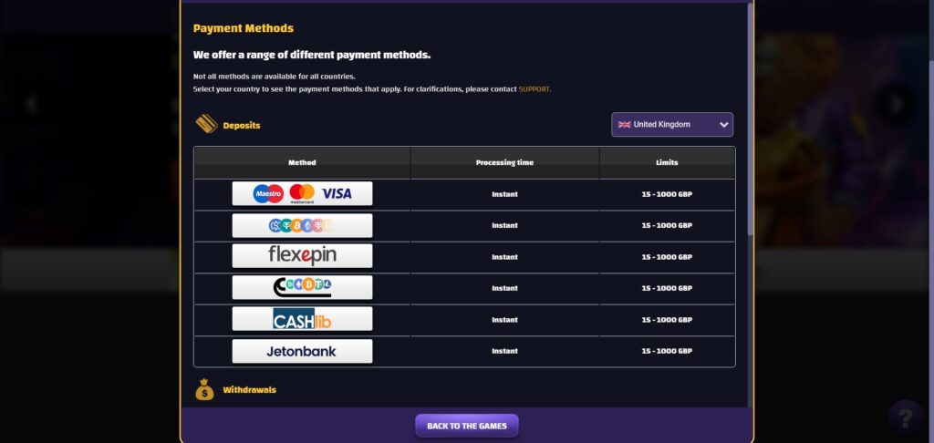 | 💳 Payment Methods | Maestro, Visa, Mastercard, Bitcoin, Litecoin, Tether, Dogecoin, Ethereum, USDT, Flexepin, Cashlib, Jetonbank, Ecopayz, Bitcoin Cash, Jeton wallet |